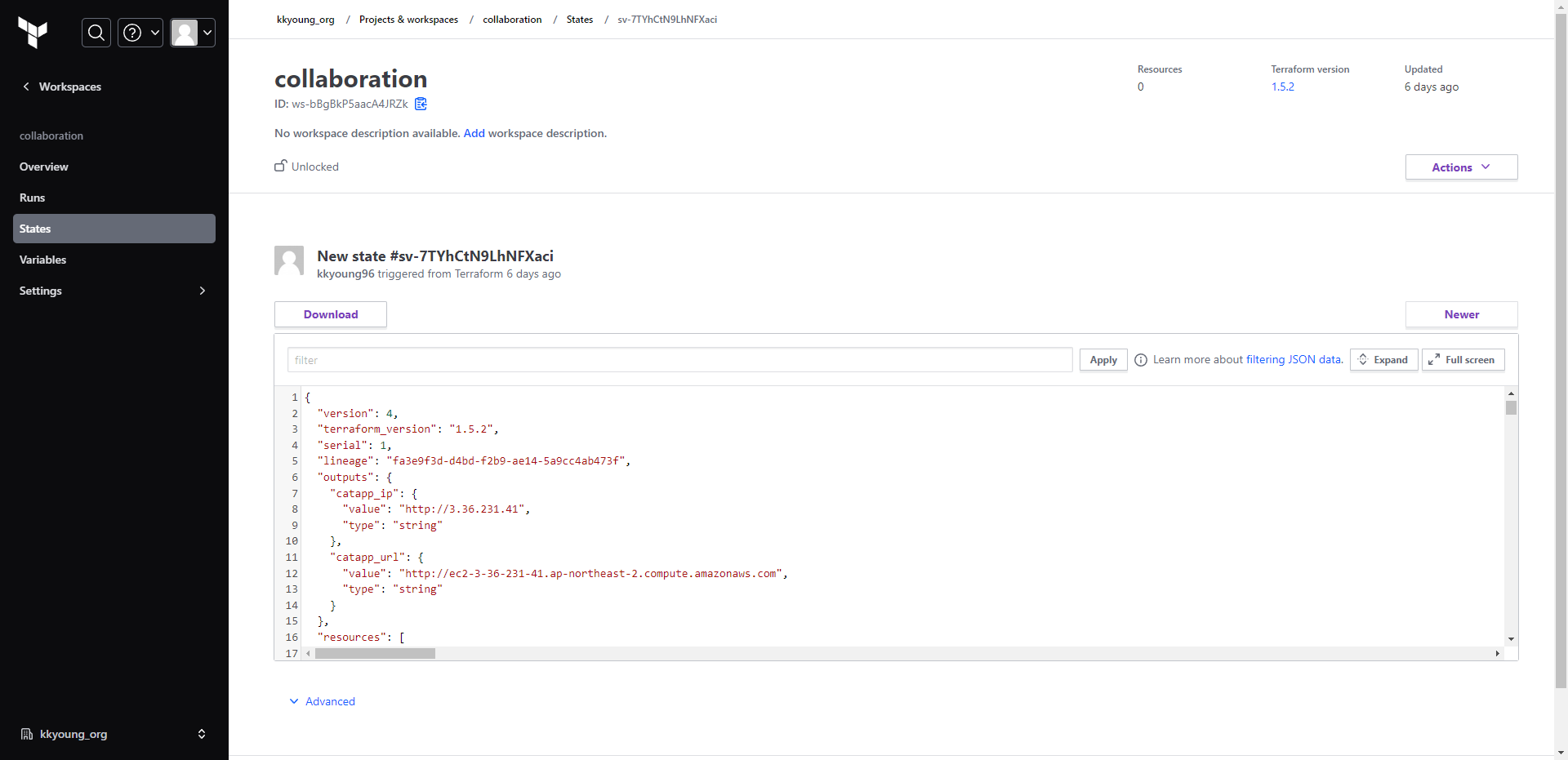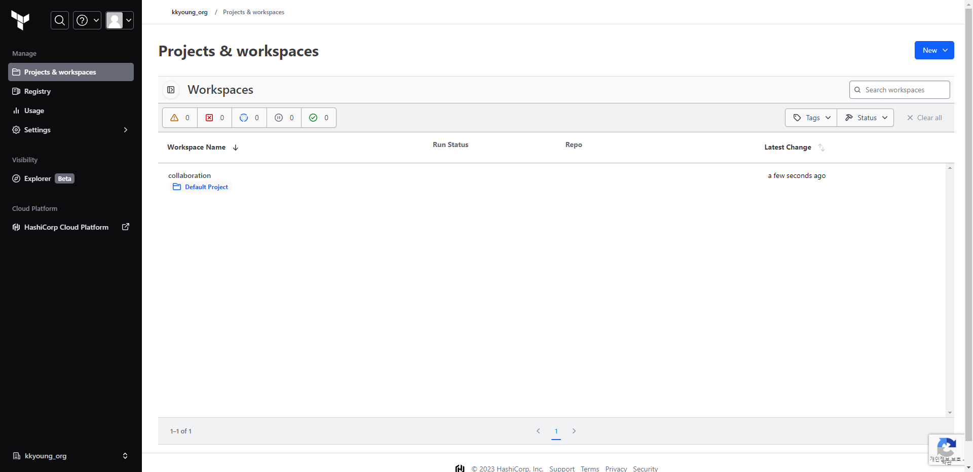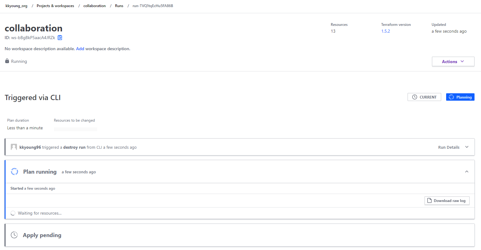 TFC의 workspaces는 CLI의 Workspace(링크)처럼 테라폼 구성과는 별개로 state를 관리하는 단위