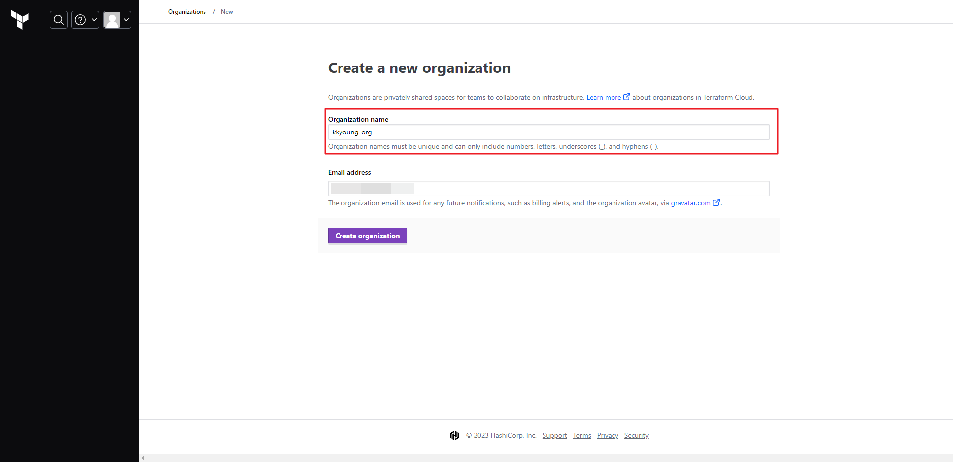 organization = "<MY_ORG_NAME>" # 생성한 ORG 이름 지정